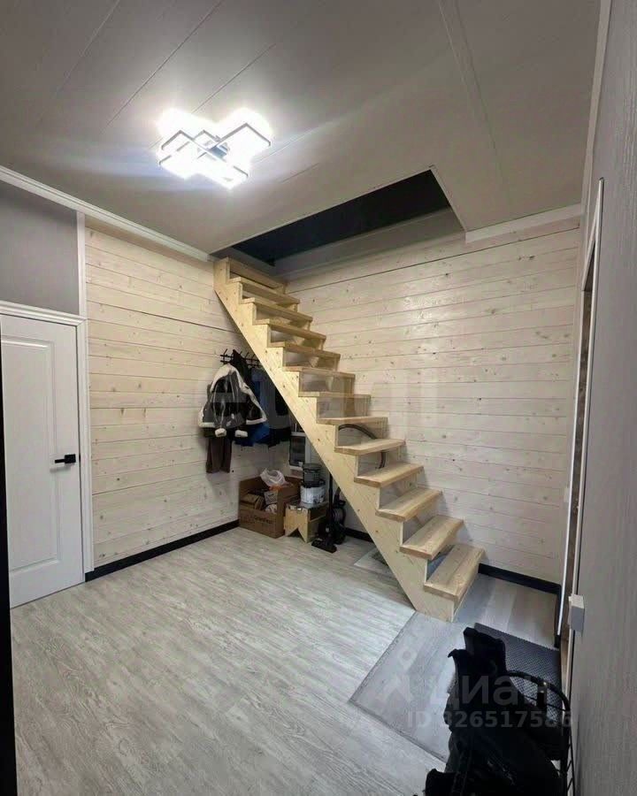 На втором этаже расположены две спальни. Интерьер выполнен в современном стиле с использованием натуральных материалов. В доме есть электрическое отопление, центральное водоснабжение и септик.