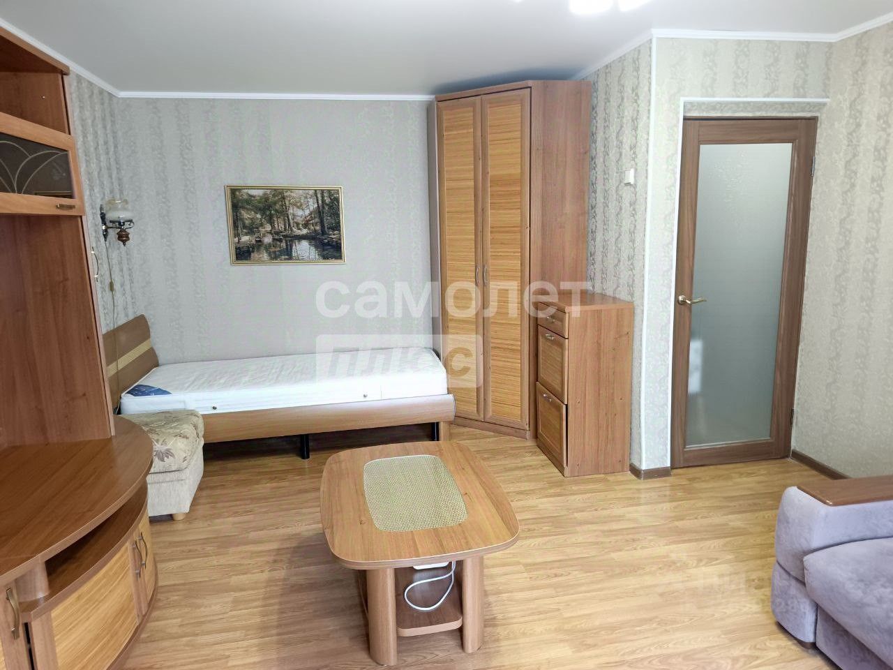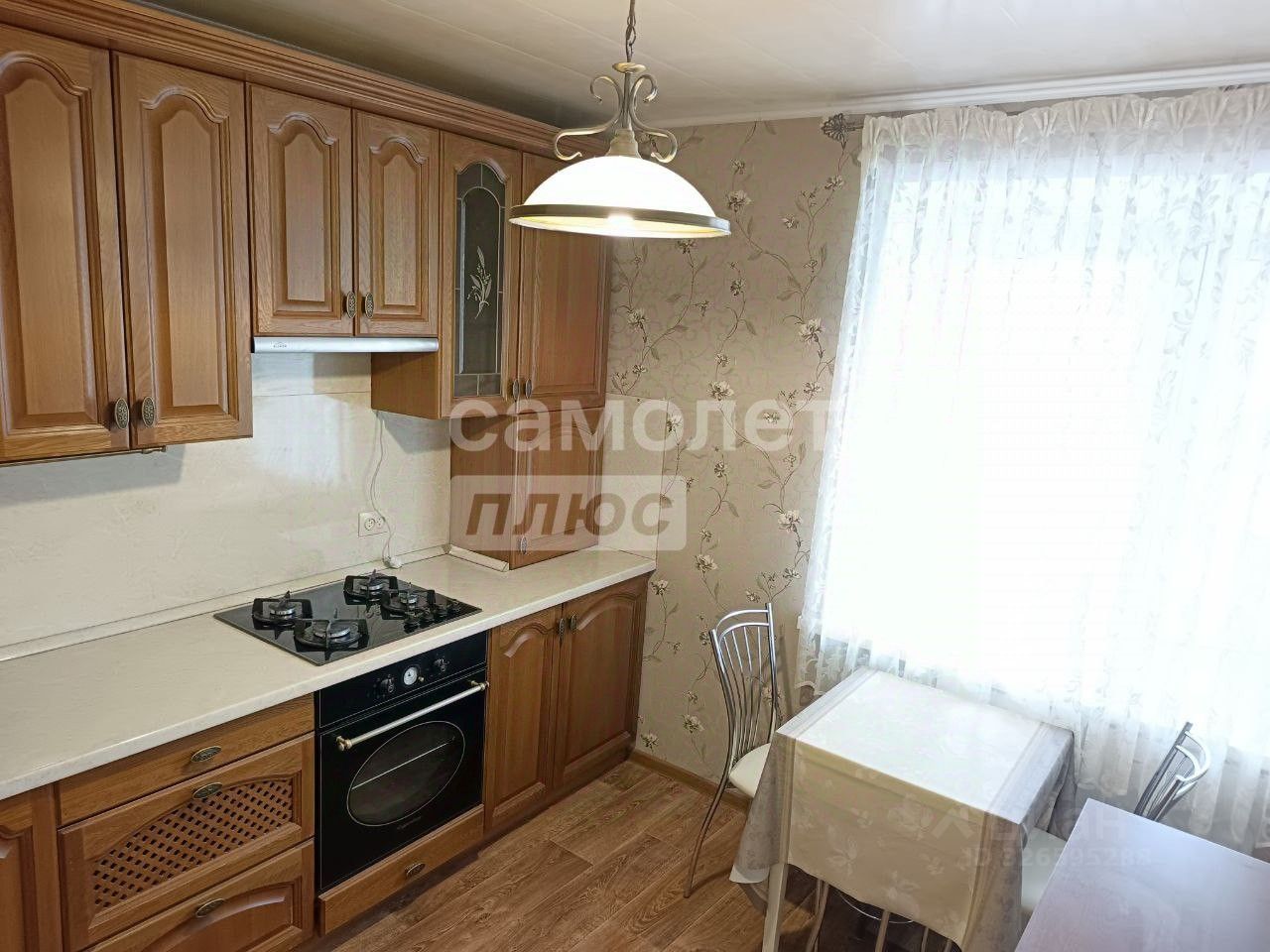 В квартире очень функциональная планировка, просторная комната , застекленная лоджия с встроенными зонами хранения, уютная оборудованная кухня. Кухонный гарнитур из массива дуба.
