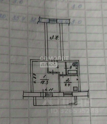 Площадь квартиры 35,7 кв. м. , - жилая 18,3 кв. м., - кухня 7,4 кв. м., - застеклённая лоджия 6 кв.м. - прихожая 3,4 кв.м., - ванная 3,6 кв.м.