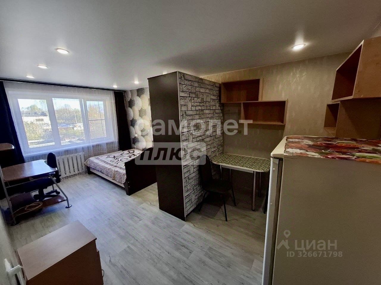 Комната светлая и просторная, удобно зонирована: выделены спальная и кухонная зоны, есть всё необходимое для жизни — заезжайте и живите!