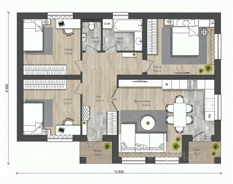 Общая площадь105 м2