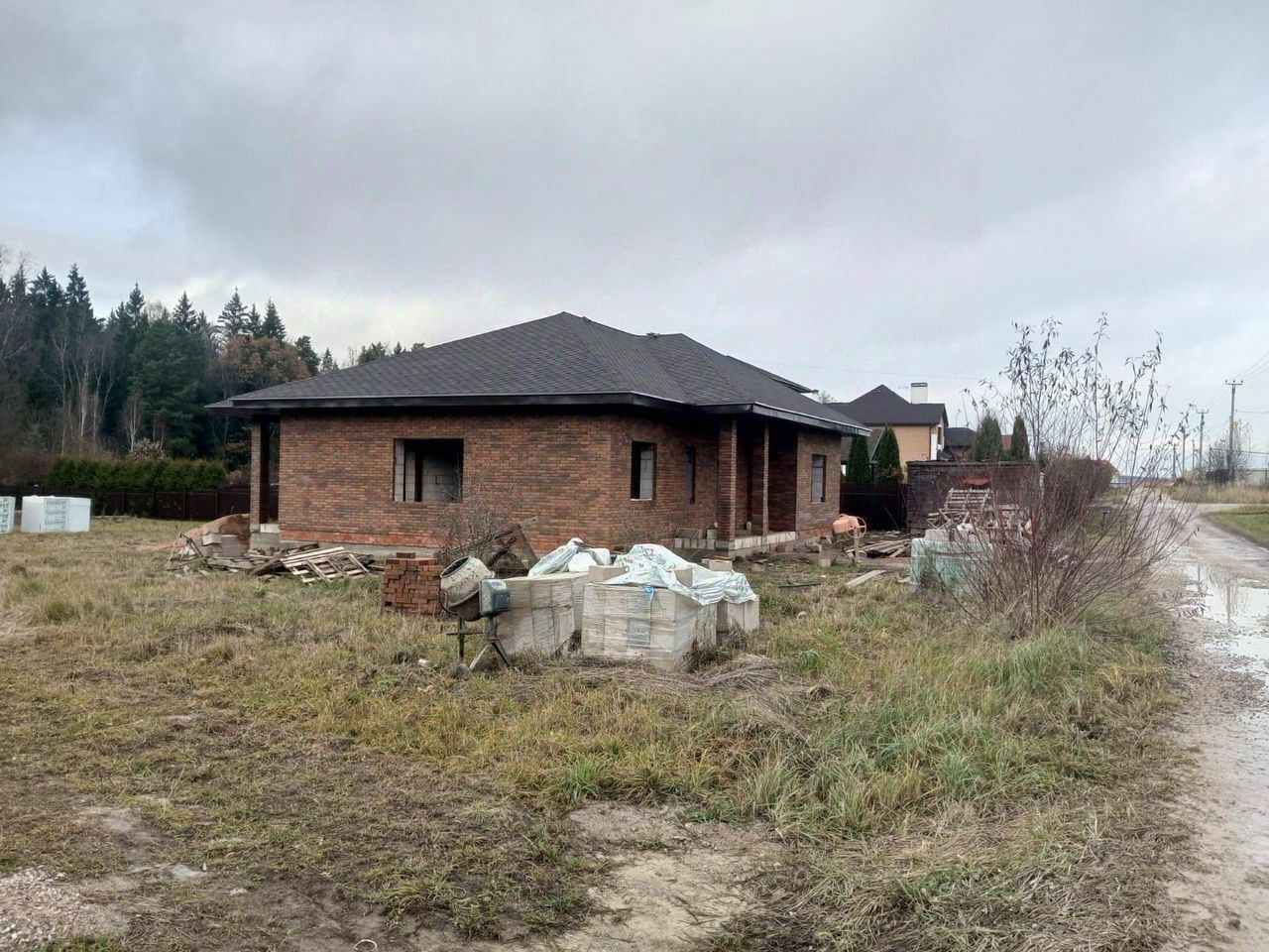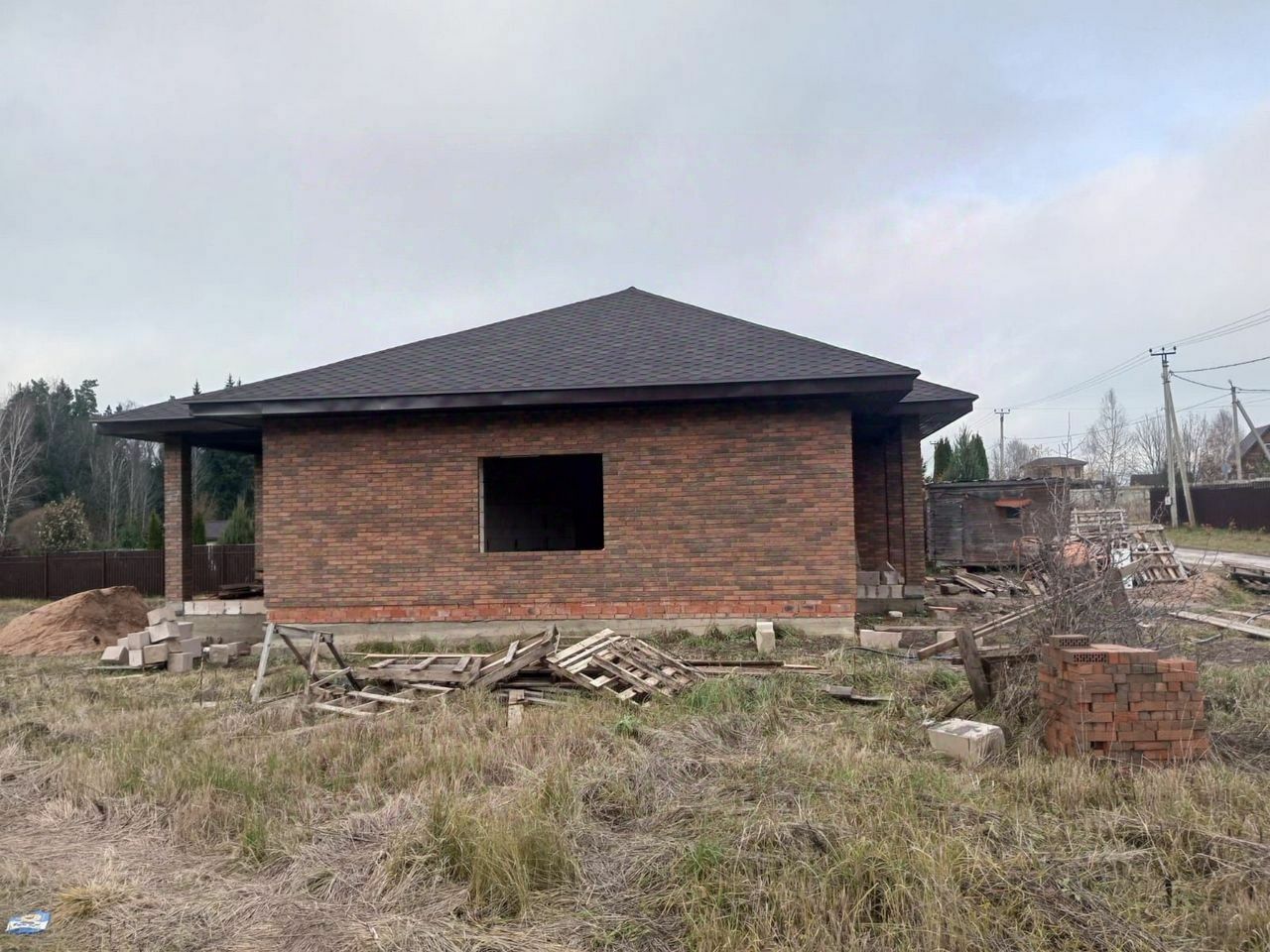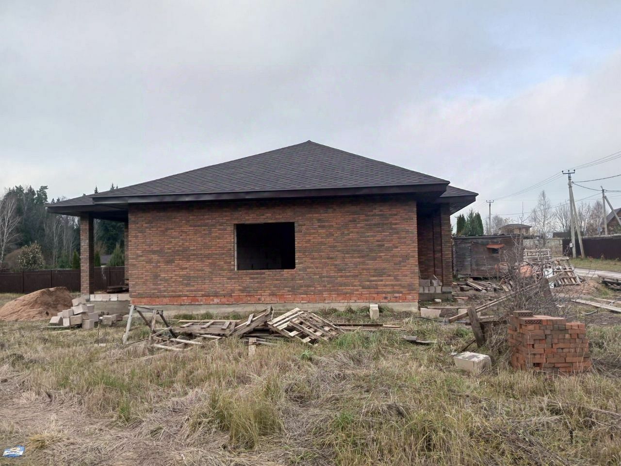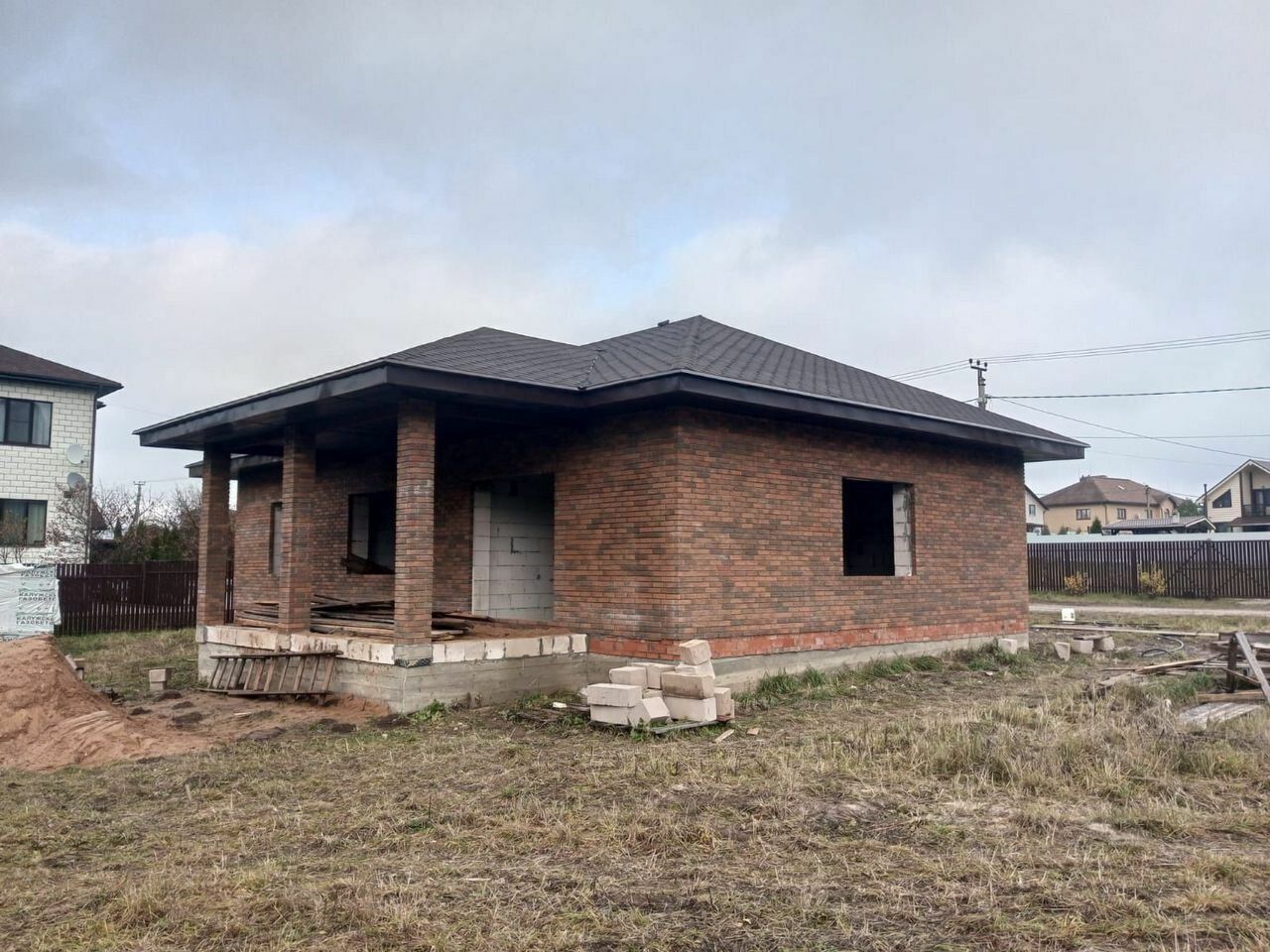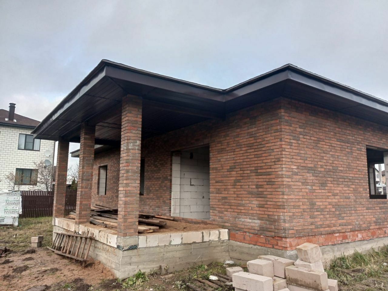 Дом из газоблока, утеплитель и облицовка кирпичом. Крыша металлочерепица.