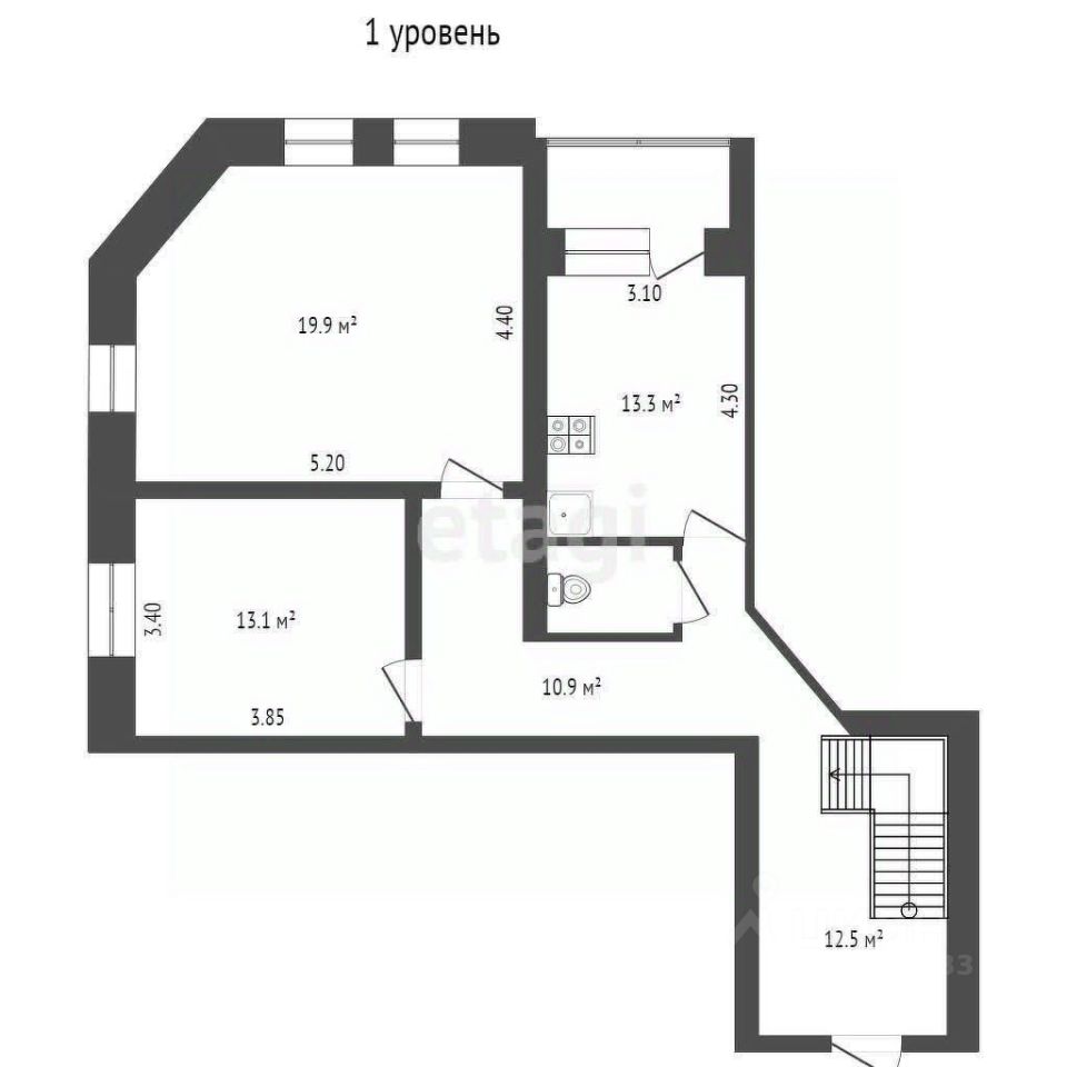 - Добротные комнаты: 19.9 кв.м., 17.1 кв.м., 13.1 кв.м., 9.1 кв.м. - Два сан узла, две застекленные большие лоджии, кладовая (гардеробная). - Большая группа прихожей, под лестницей можно организовать дополнительное пространство. - На втором этаже есть пространство 18.8 кв.м., где можно организовать рабочую комнату.