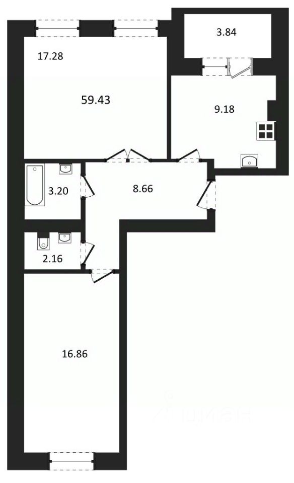 Общая площадь59,43 м2