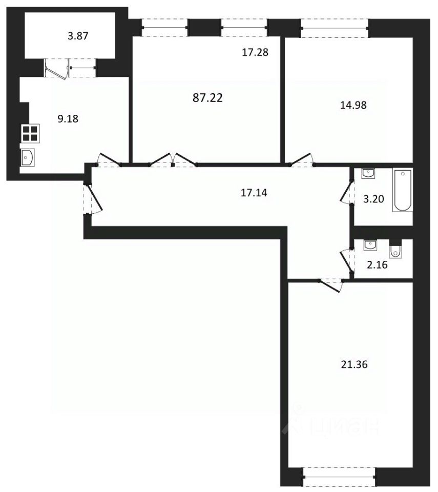 Общая площадь87,22 м2