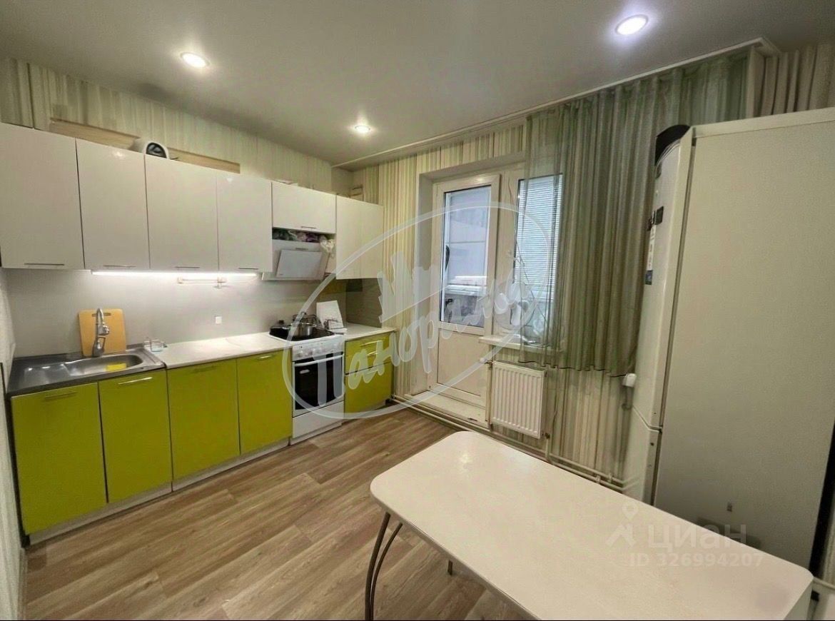 В квартире в кухне остается кухонный гарнитур, холодильник, стол