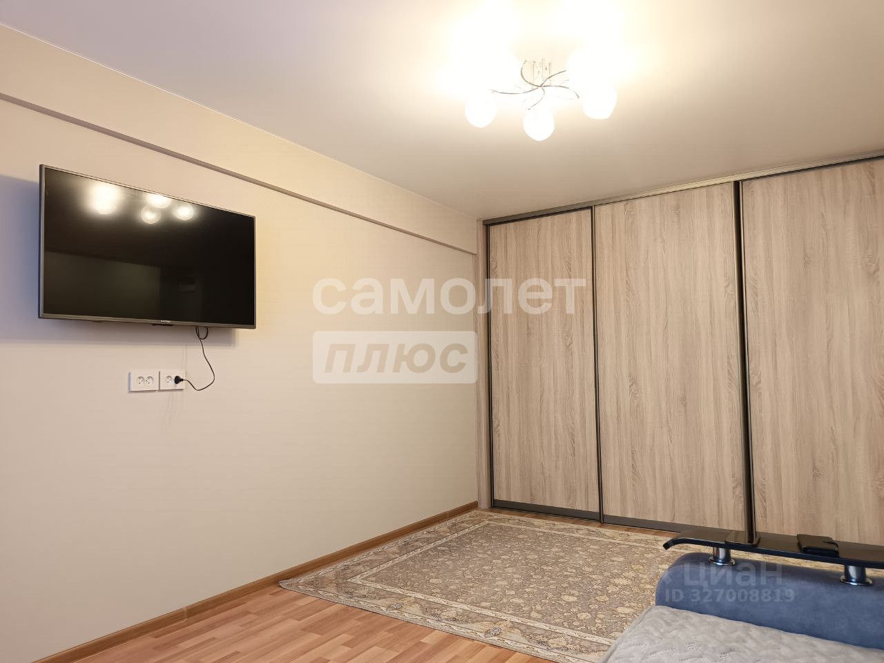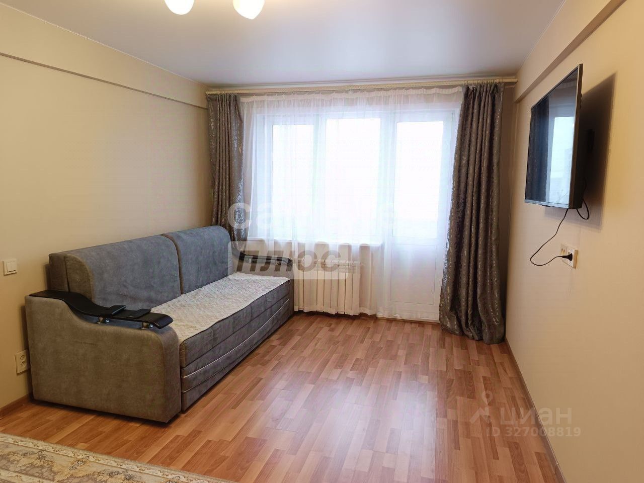 Просторная комната, очень вместительный шкаф-купе во всю стену, застеклённый балкон, совмещённый санузел.