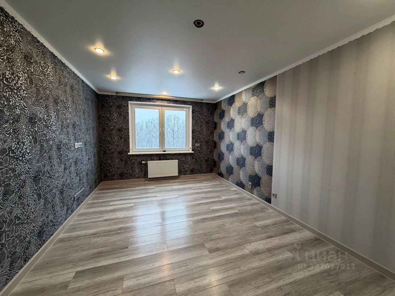 Натяжные потолки ,на полу ламинат, в кухне и санузле керамическая плитка.