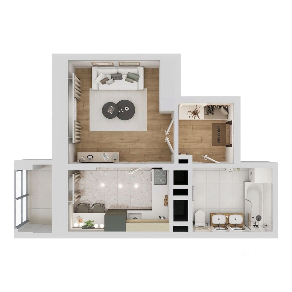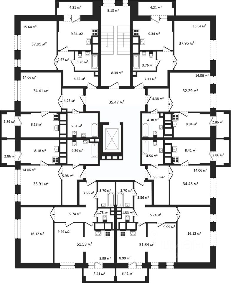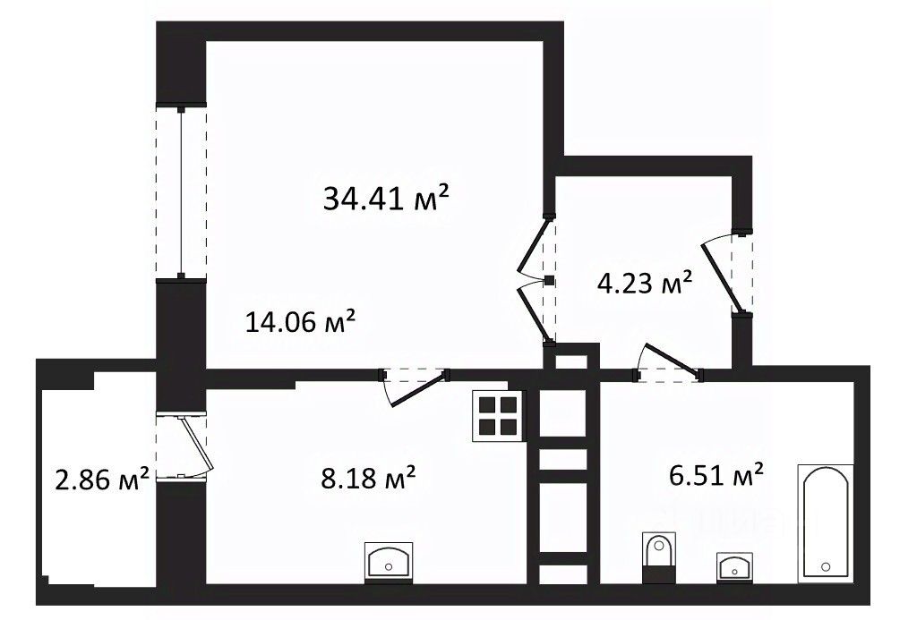 Общая площадь34,41 м2