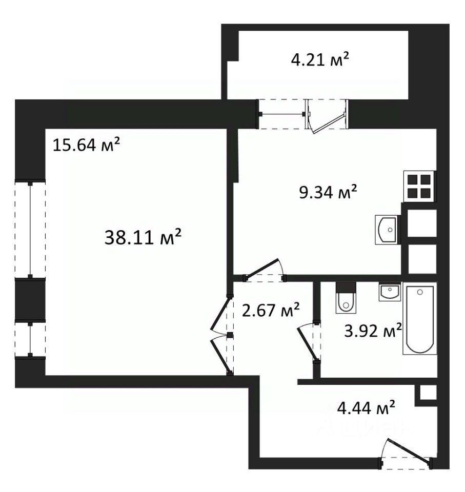 Общая площадь38,11 м2