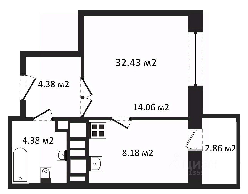 Общая площадь32,43 м2