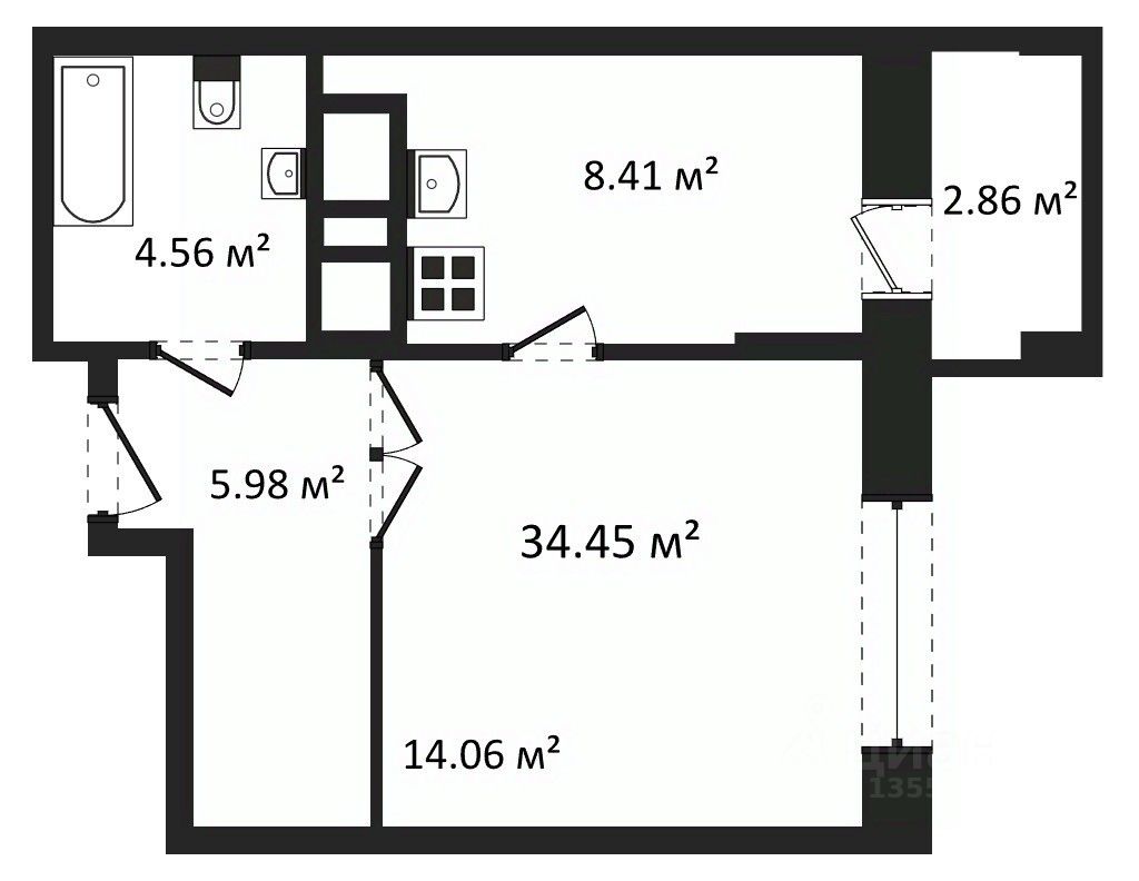 Общая площадь34,45 м2