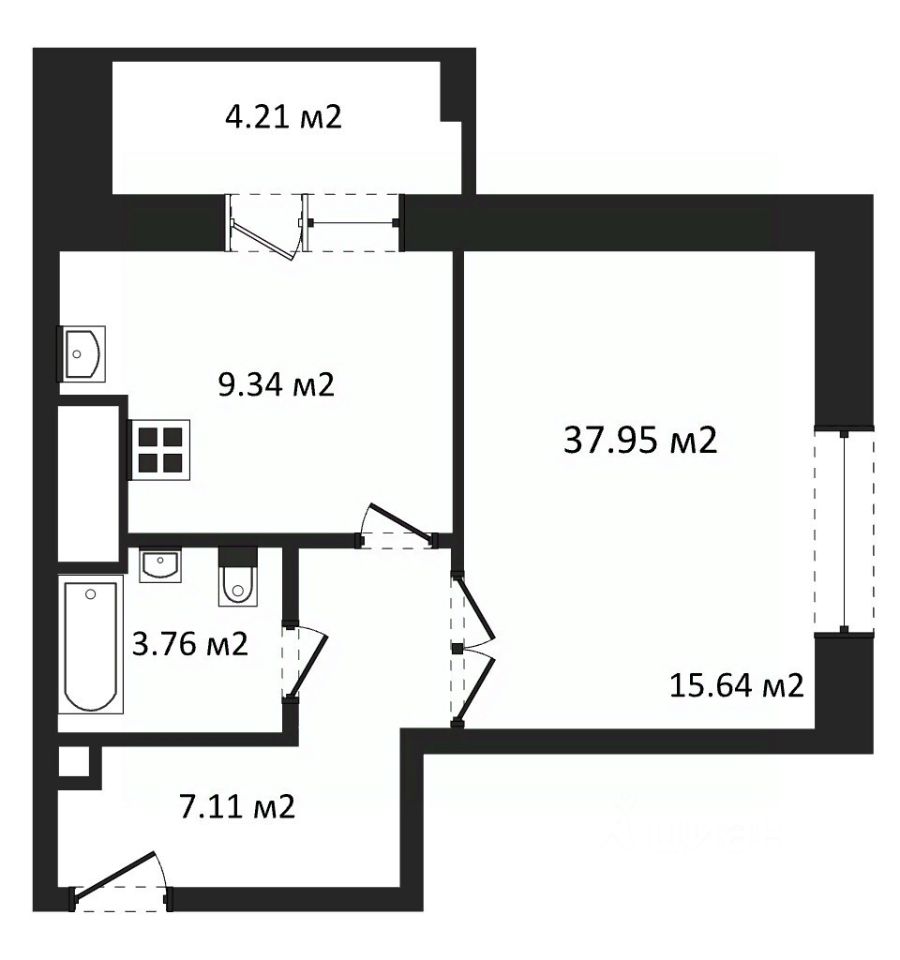 Общая площадь37,95 м2
