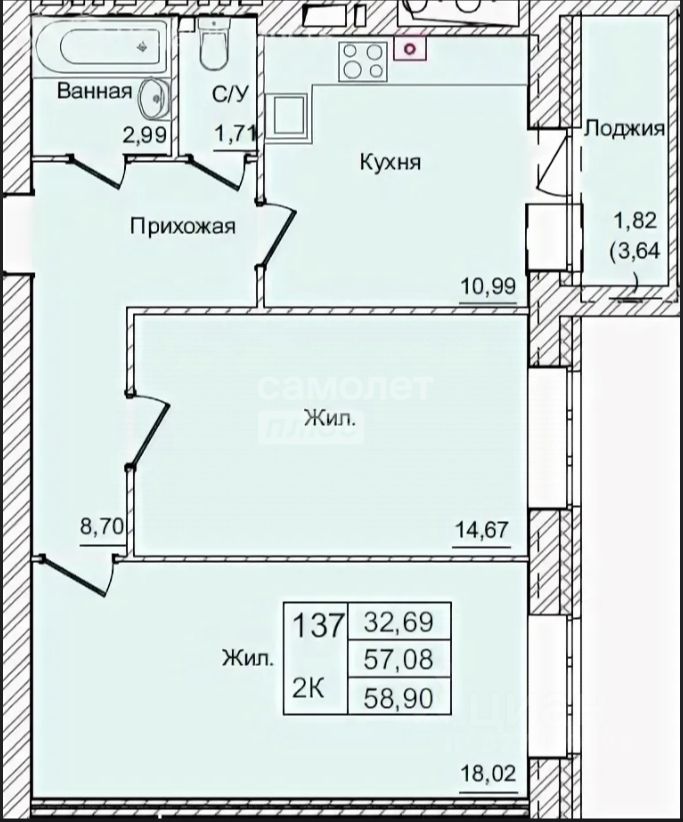 Площадь 58 м². Идеально для семьи.